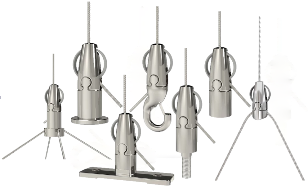 Conceput pentru suspendare iluminat arhitectural, sisteme de iluminat, signalistică, panouri acustice și alte instalații în care estetica este importantă. Varietatea de kit-uri Angel permite o ajustabilitate și flexibilitate completă fără utilizarea unor instrumente suplimentare. Gama de modele Angel oferă un finisaj profesional și elegant pentru tine și clienții tăi, fără compromis în privința rezistenței și durabilității.