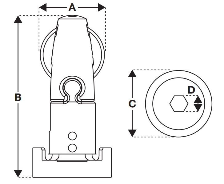 | Mărime (mm) | 16 | 35 | Ø 11,5 | 15 | M6, 1/4” UNC |