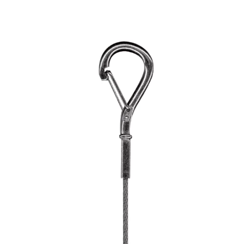 Terminație prevăzută cu o carabină de dimensiuni mici pentru conectarea de profile, console, corpuri de iluminat sau alte structuri existente.
