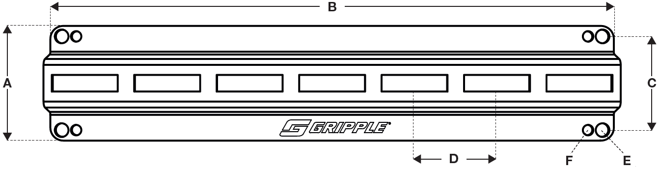 Profil A (mm) B (mm) C (mm) D (mm) E (Ø) F (Ø) Încărcare maximă concentrată punctual (SPL) Încărcare maximă uniform distribuită (UDL) Număr recomandat de fixări